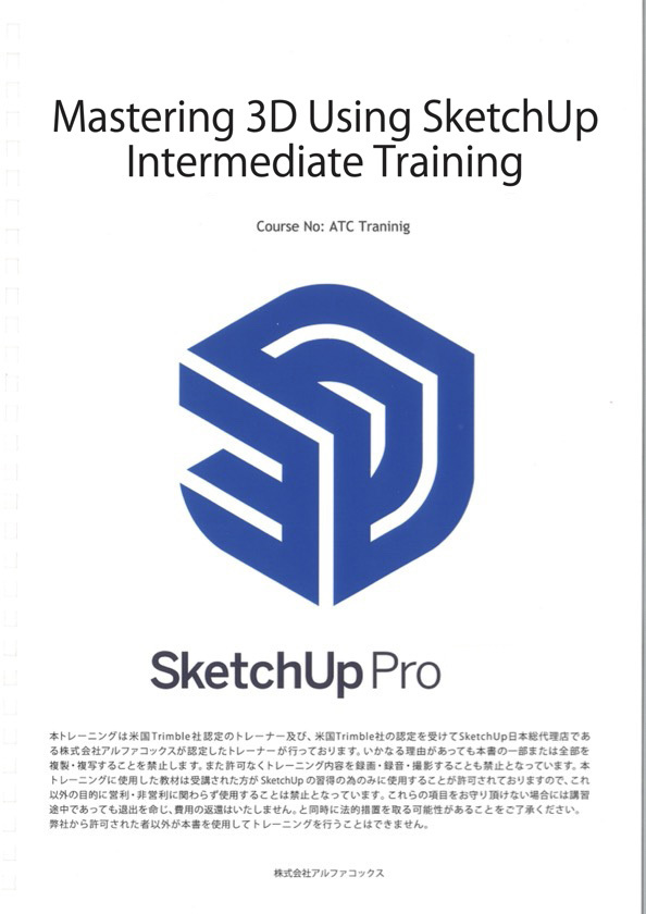 本トレーニングは SketchUp の基本ツールの更なる使用方法や効率的なモデリング方法、プレゼンテーション方法の習得を目的にカリキュラムを作成しております。