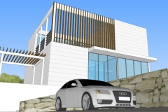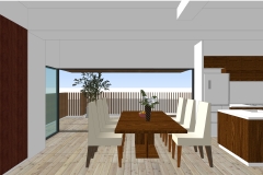 実施設計完了時にオーナーより設計図書一式を受取り, その内容をもとにSketchUpで詳細3Dモデリング. 諸室のパース表現・ウォークスルーによる空間把握と, 購入予定の家具の3Dデータ配置によるレイアウトシミュレーション, その他着工直前の意思決定ツールとして利用.