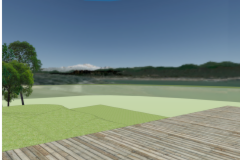 リビング・ダイニング・キッチン周りのインテリアを主体としたSketchUp Modeling および Google Earth のアイレベルからの周辺環境を合成した、インテリアからの景観シミュレーション