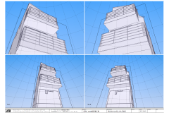 以前ボリュームチェックをして提案したPROJECTの基本構想をまとめるにあたり, 計画内容の進展にともなう天空率のSketchUpを利用した再検討. (隣地斜線・道路斜線)
