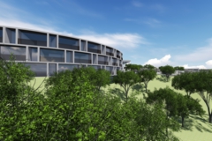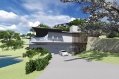 リゾート施設のプロポーザルコンペ. SketchUp による敷地コンター作成, 配置する全ての施設の 3D modeling, 提出レポート作成における各施設の Visualization イメージパースの作成