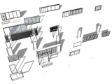 実施設計段階における展開図・建具表の作成. 全ての部屋・建具・家具等、SketchUp による 3D モデルを作成し、LayOut により展開図・建具表を作成.