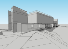 敷地に3m以上の高低差がある場合の隣地斜線制限の天空率による緩和check, 確認申請提出資料作成, 実施設計におけるSketchUp modelingの活用, 3Dデータからの2D図面作成, SketchUp モデリングによる構造と意匠・設備の整合性の確認等実施設計サポート