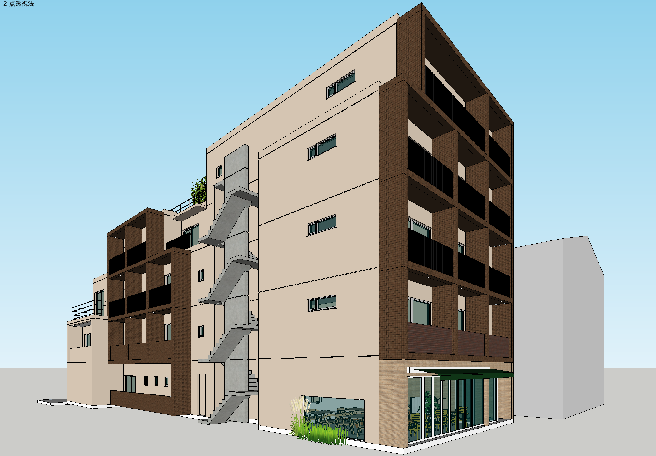 LayOut によるプレゼンテーションドキュメント作成(各階鳥瞰平断面パース、断面パース、外観パース、立面図等)