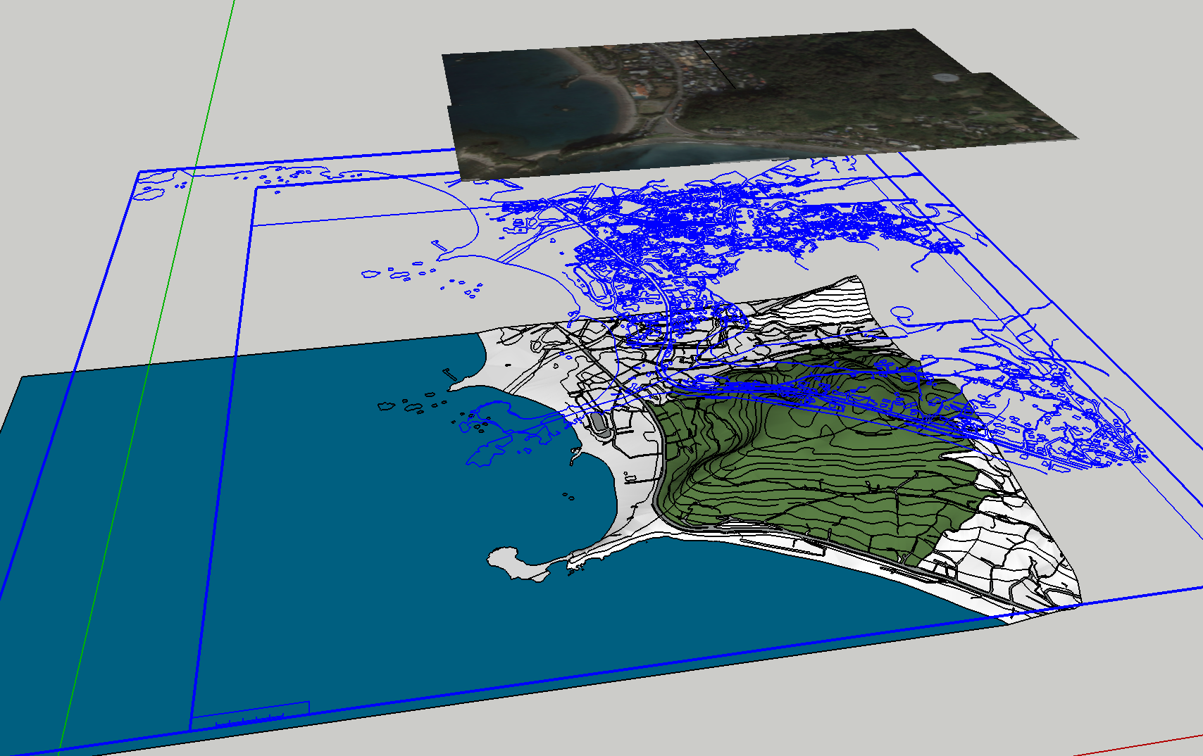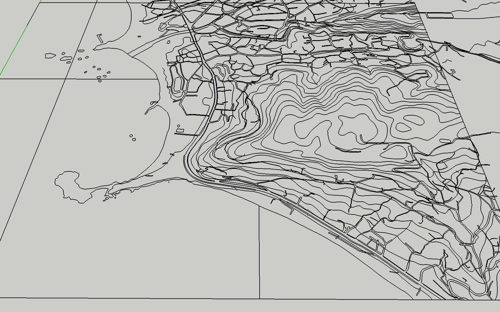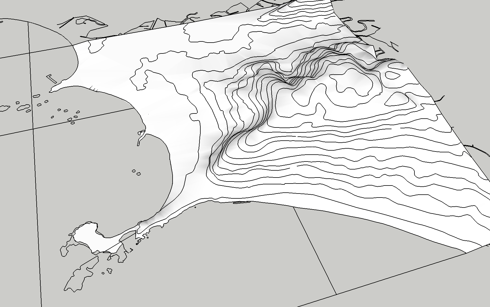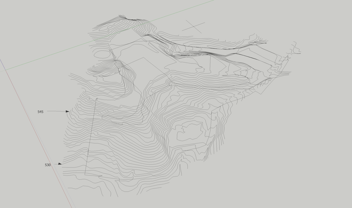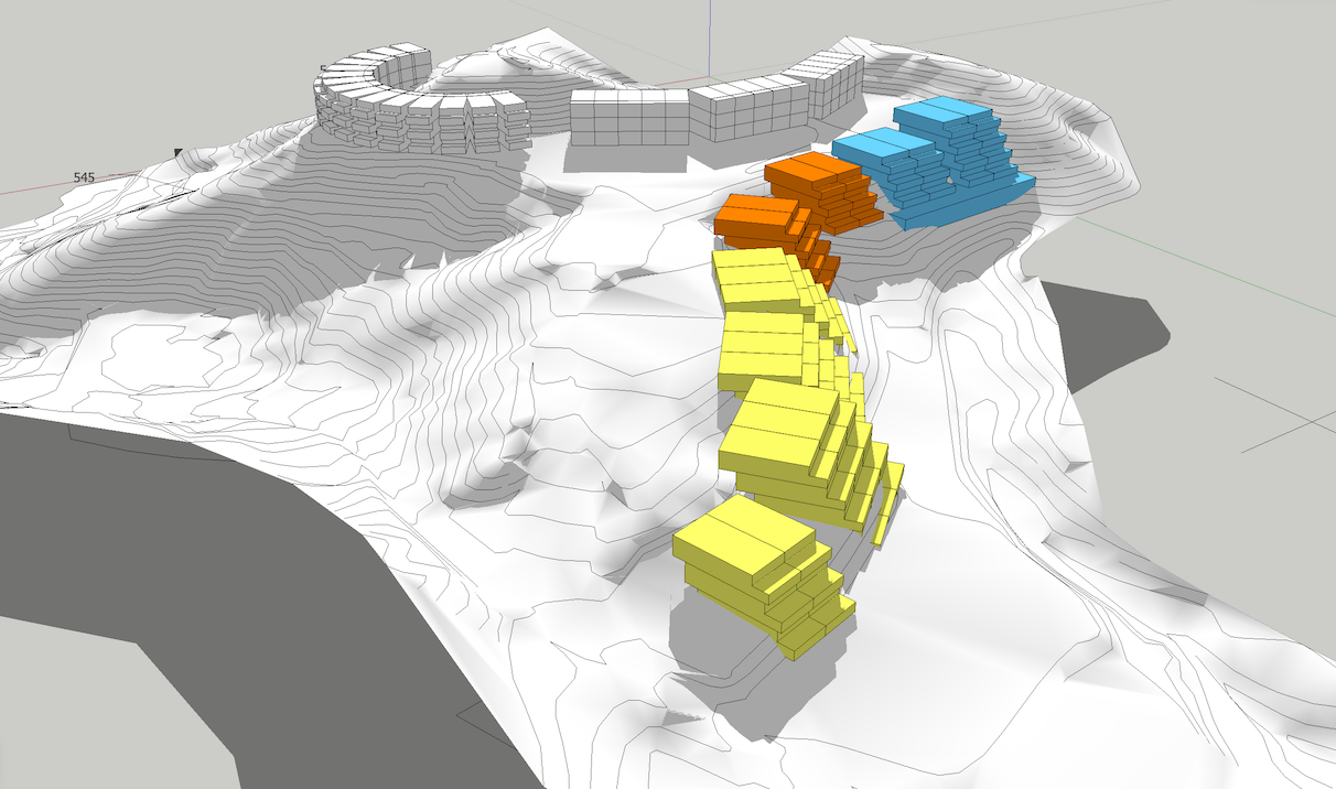 共同住宅計画予定地周辺を含めた地形モデリングのサポート。地理院地図3DのSTLデータ、基盤地図情報のコンターデータ、SketchUpによる地形入力の比較と合成。