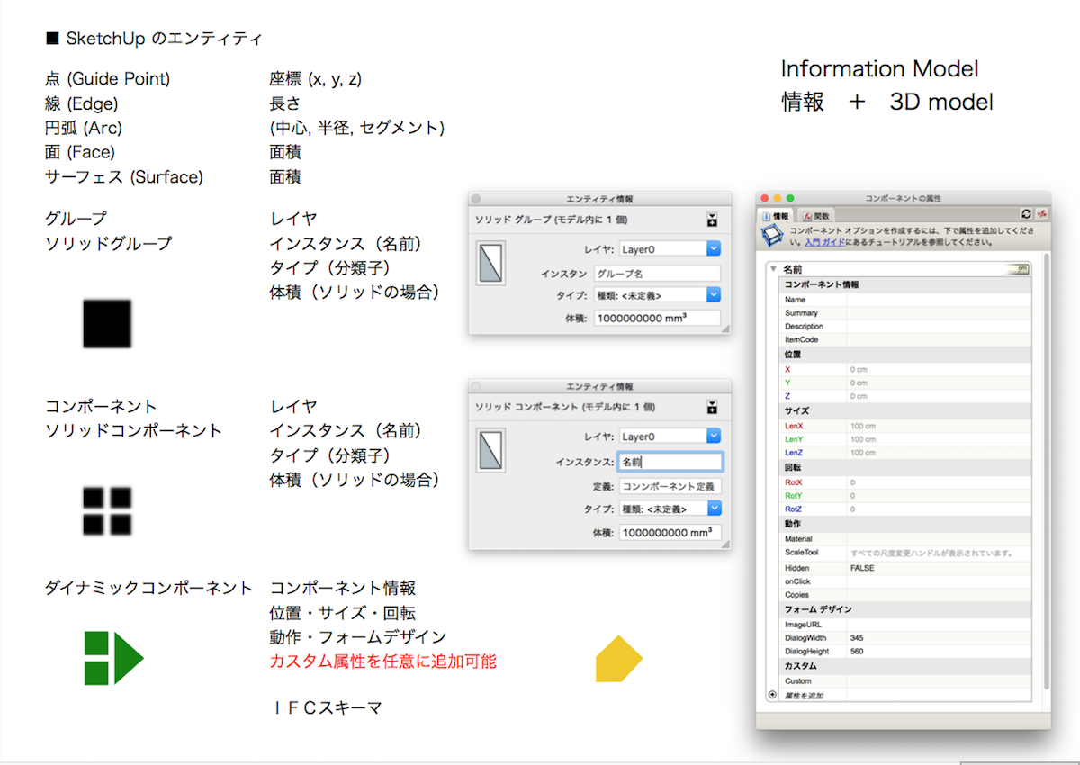 SketchUp は、また、PRO 版に付属する LayOut との連携で、3D model と連携した 2D Drawing/Document を作成可能。その為の Information Modeling (BIM的)手法と実践例の紹介。