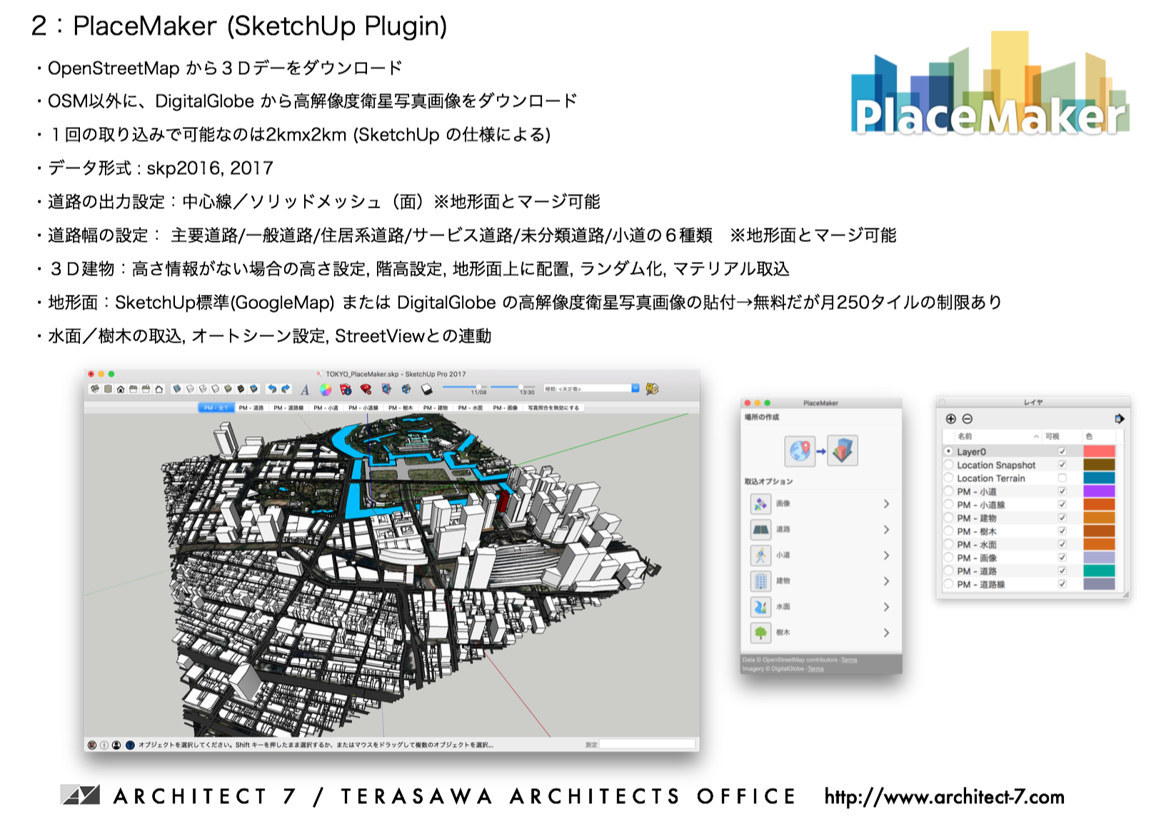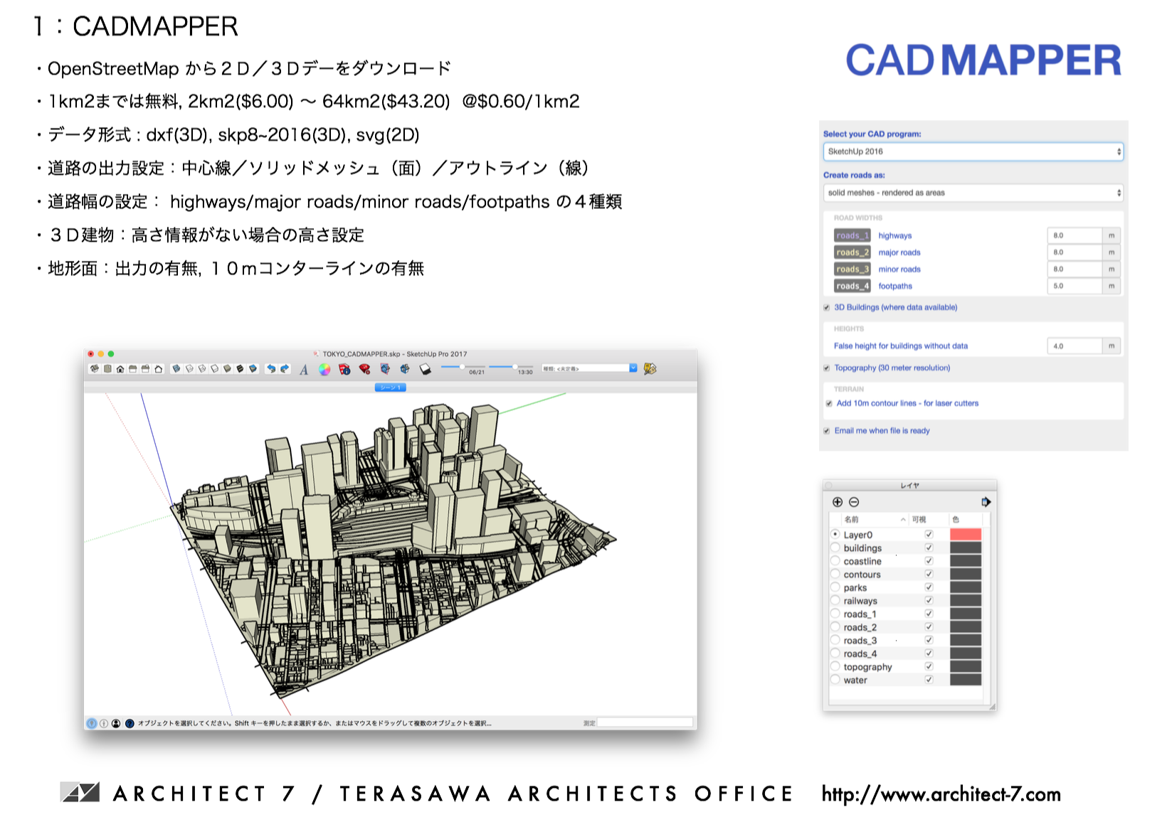 OpenStreetMap をベースとした CADMAPPER の紹介と、日本語訳を担当して2月にリリースされた SketchUp 用プラグインの PlaceMaker の紹介