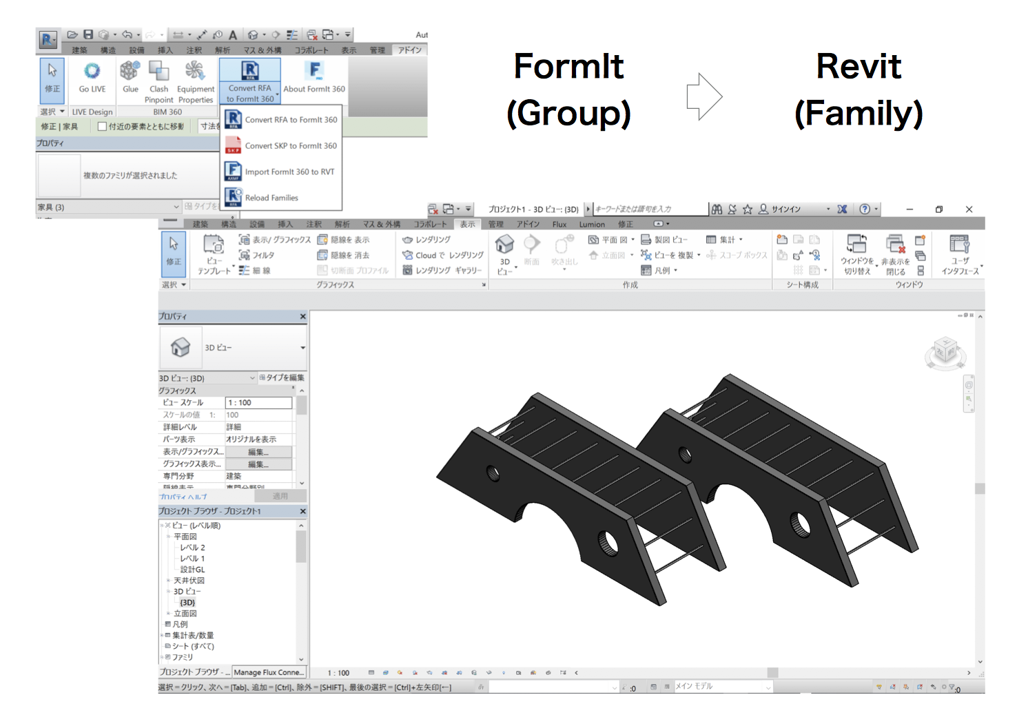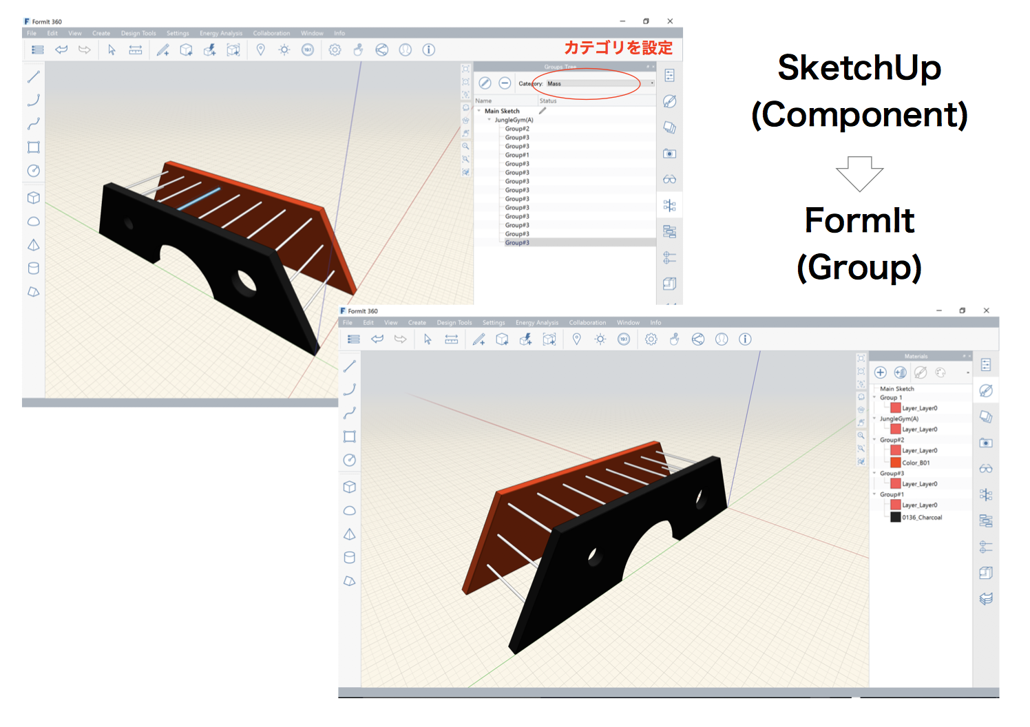 SketchUp (Component) データを FormIt に取り込みグループとして属性を付加すると Revit に Family として取り込み可能となる事例の紹介