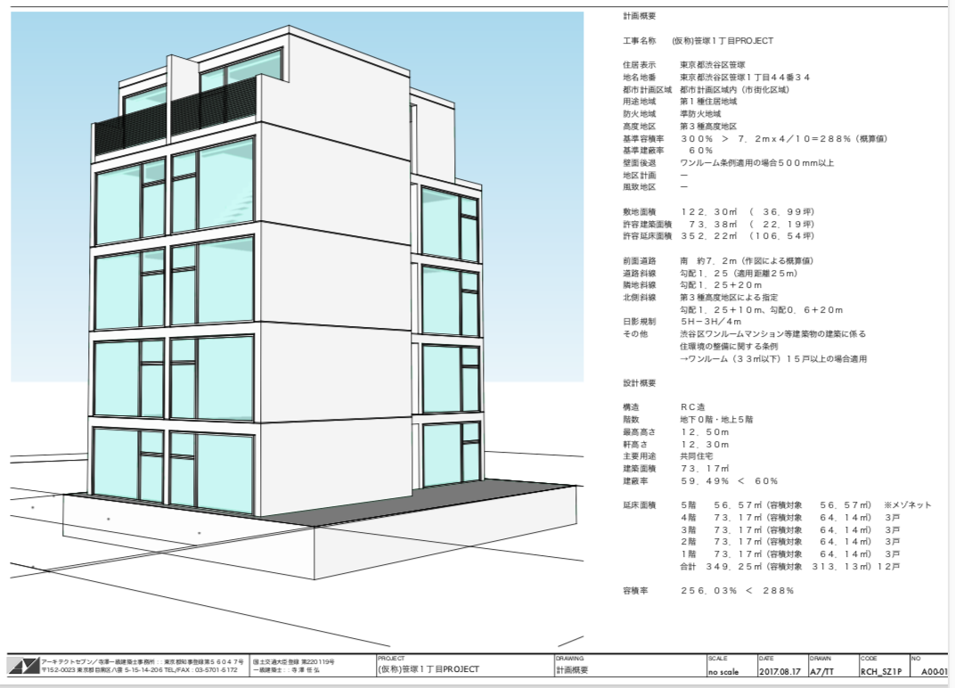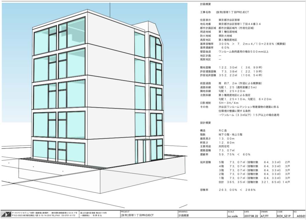 高度斜線チェック, 道路斜線の天空率チェックによるボリュームをベースとした基本設計を SketchUp により modeling, LayOut でドキュメント作成