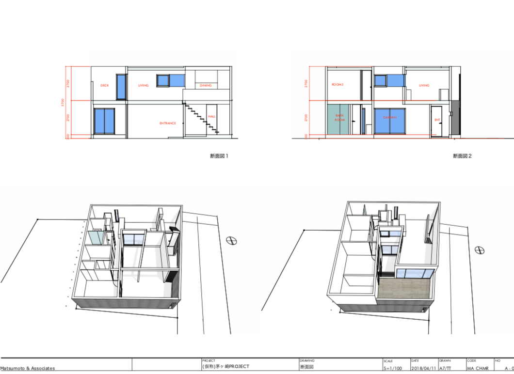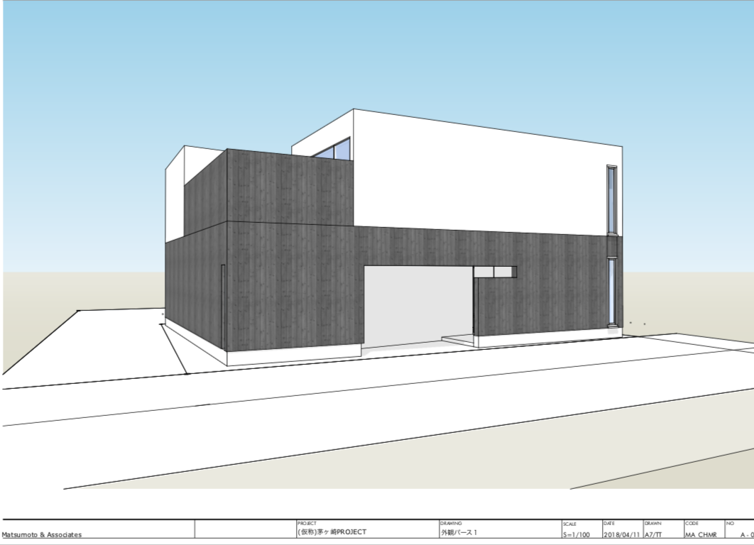 住宅の基本設計, SketchUp によるリアルタイムモデリング, SKP モデルから LayOut によるプレゼンテーション資料・図面作成(配置図・各階平面図・立面図・断面図・パース)