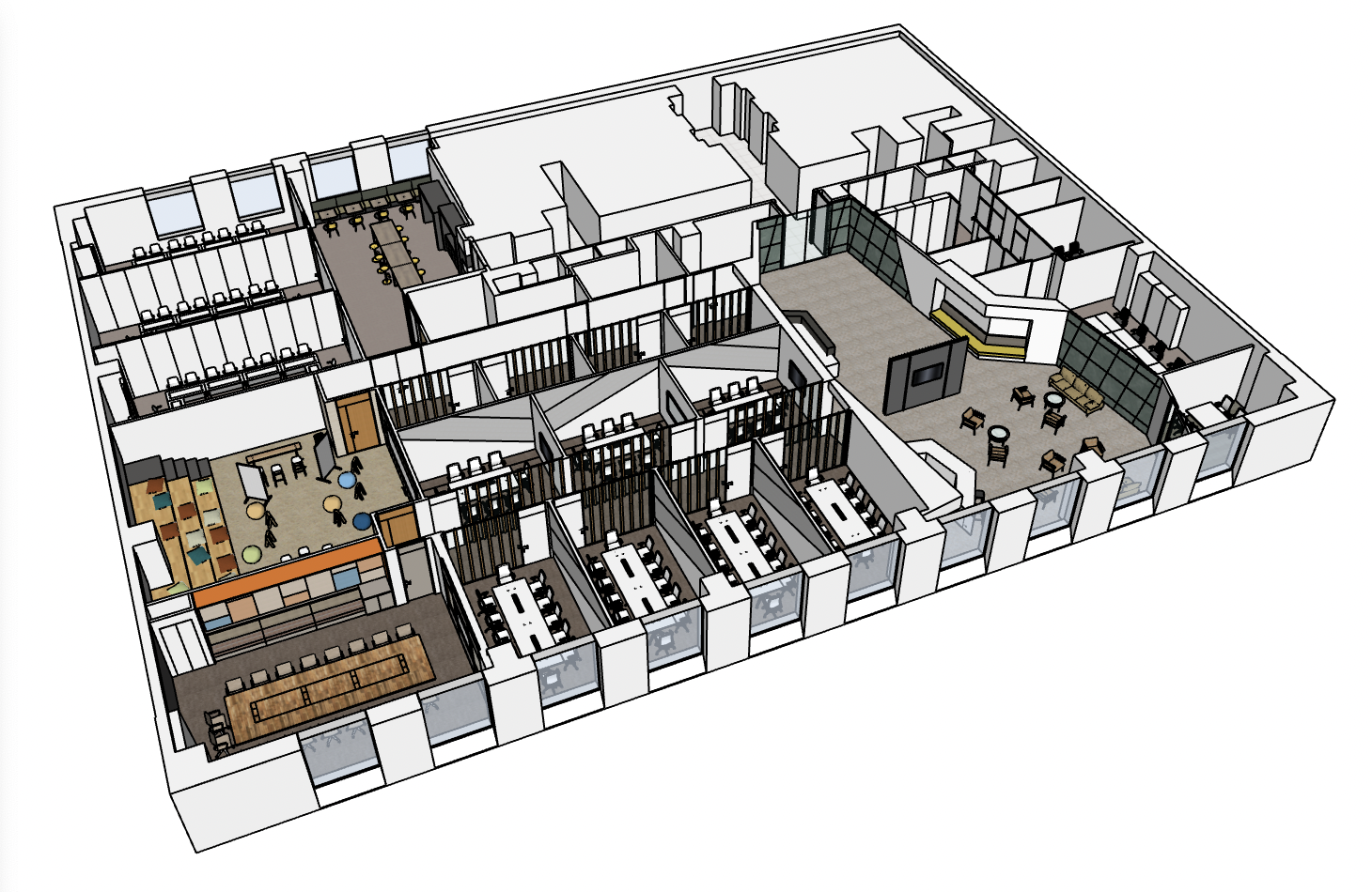 内装リニューアルデザイン提案, SketchUp によりリアルタイムモデリング・デザイン検討, プランニング, モデル作成, プレゼンテーション資料作成