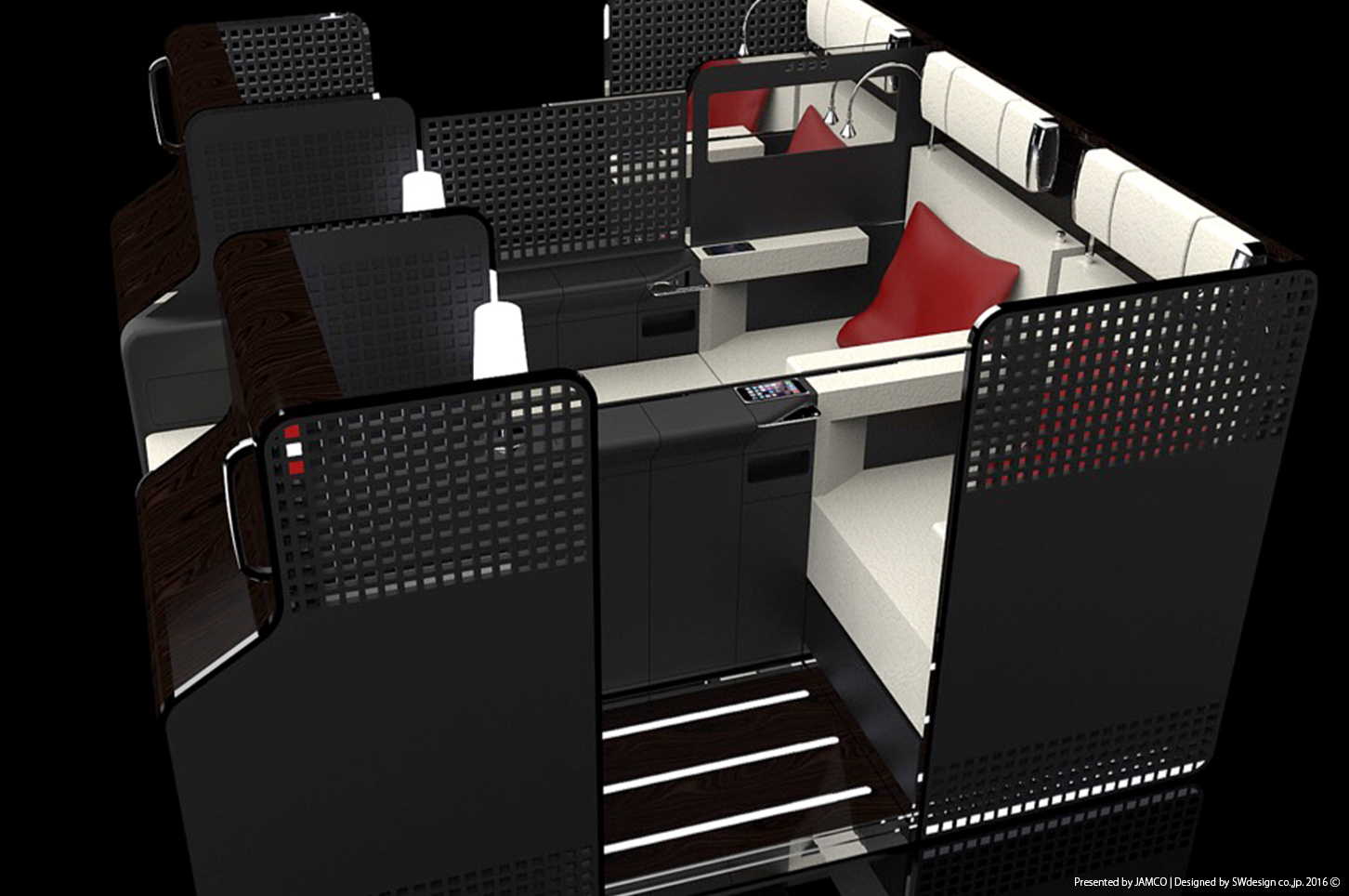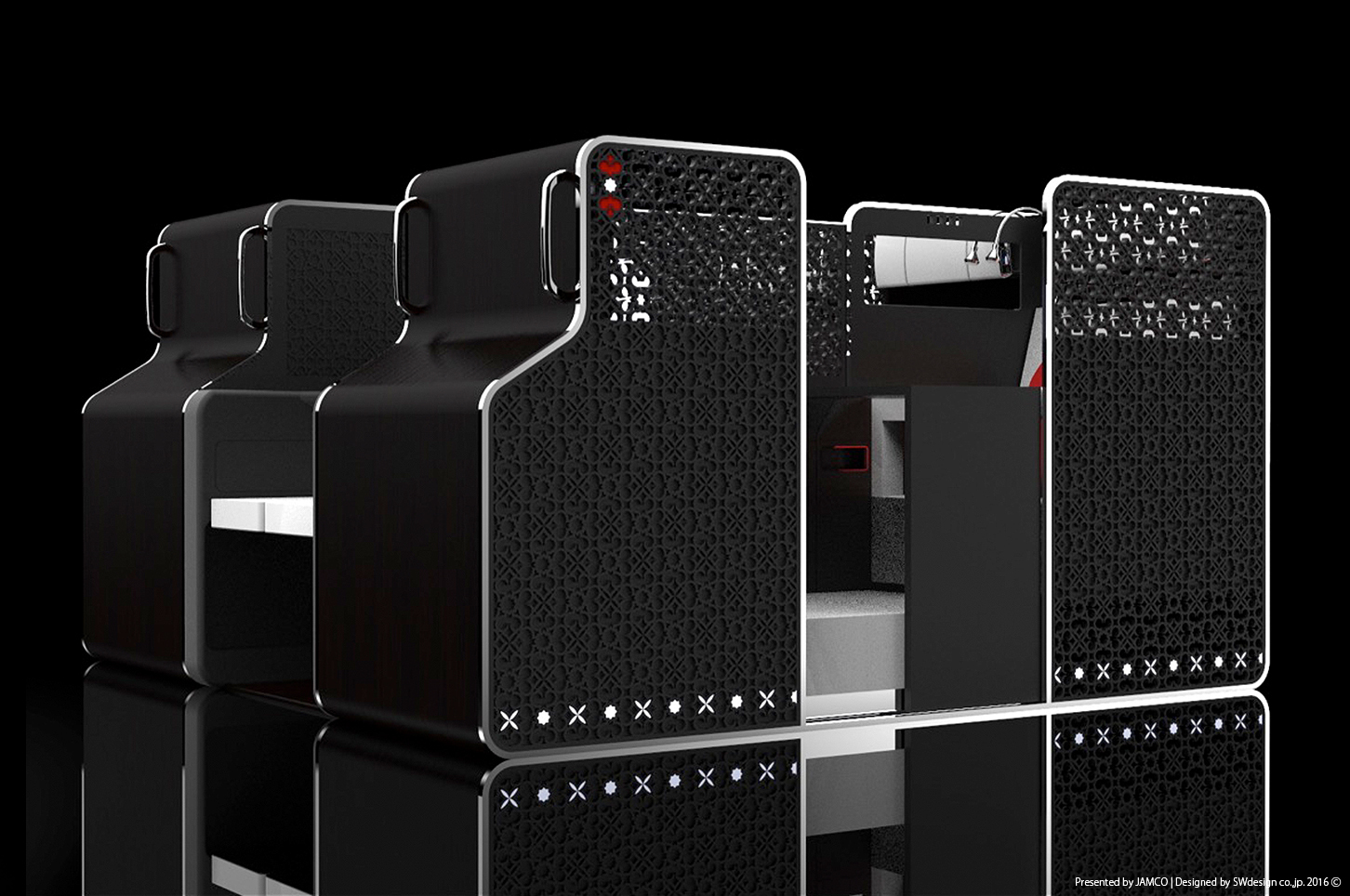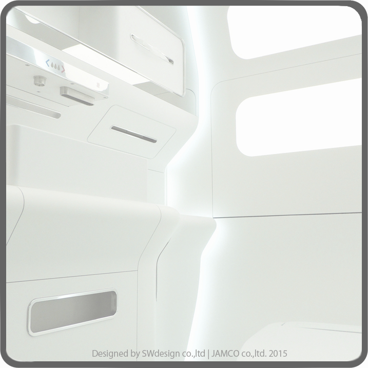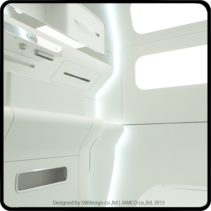 JAMCO Corp. is a manufacturer of comprehensive aircraft equipment dealing with domestic largest aircraft interior products and aircraft equipment manufacturing. Boeing, Airbus and other aircraft manufacturing companies, we have many airlines on our clients. As the third collaboration between JAMCO and SWdesign, we announced next-generation business class & first-class concept prototype / SpaceX at AirCraft Interior Expo (2017.4.06-07) this time in Hamburg, Germany. Following GalleyX announced last year, we have adopted an architectural modular system and a common functional design language.