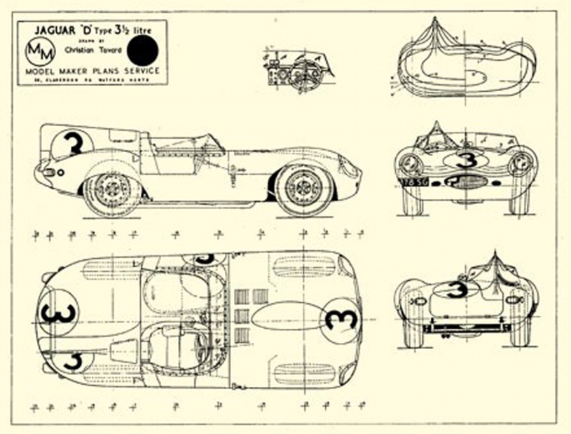 It is a four-sided view of XKD. The feature is that the intonation seen in the side view is not seen in the plan view seen from above. The shape of the race car retains the technology of that era. It does not create a cool shape, but expresses the ultimate rationality of the times. The plan view, which is narrowed down from the front to the rear, is an indication of aerodynamic characteristics. The story changes, but the number of designers who can draw four views has decreased. Jujiaro once told me that four views are the life of car design. The Audi A5 was built on that principle.
